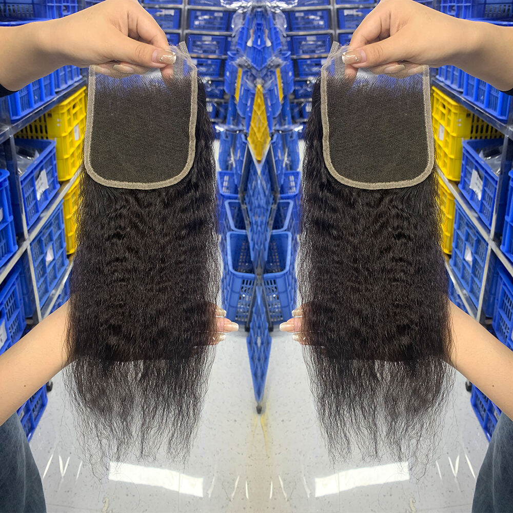 Wholesale 12-22Inch Yaki Straight Pre-plucked HD Lace 4*4 Lace Closure